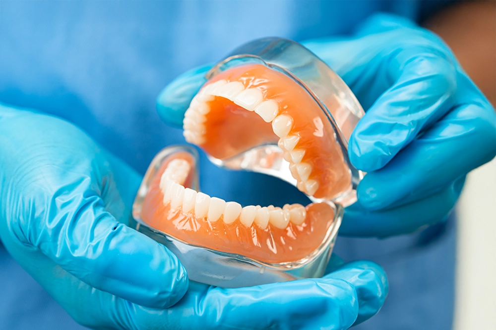 Keep the denture in place for 24 hours to protect the blood clot. Manage bleeding with gauze, clean the denture regularly, and expect temporary speech changes. Remove stitches after a week.